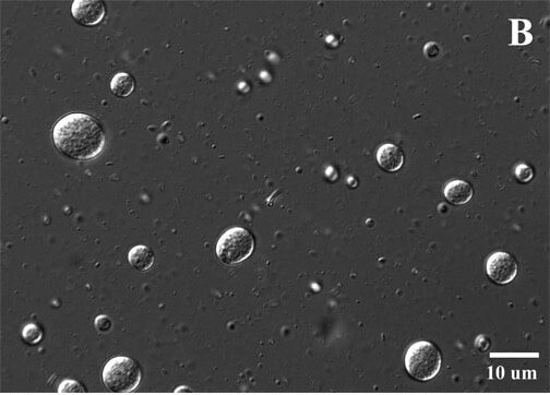 FIG. 3. Filled hydrogel particles in foods can deliver nutraceuticals to the body. The filled hydrogel microspheres consist of tiny fat droplets trapped within larger spheres made from food biopolymers. The fat droplets may contain nutraceuticals, such as vitamins, carotenoids, or curcumin. This is an example of an o/w/w emulsion, since the hydrogel particles are mainly water, and they are surrounded by water. Courtesy of D. Julian McClements, University of Massachusetts Amherst.